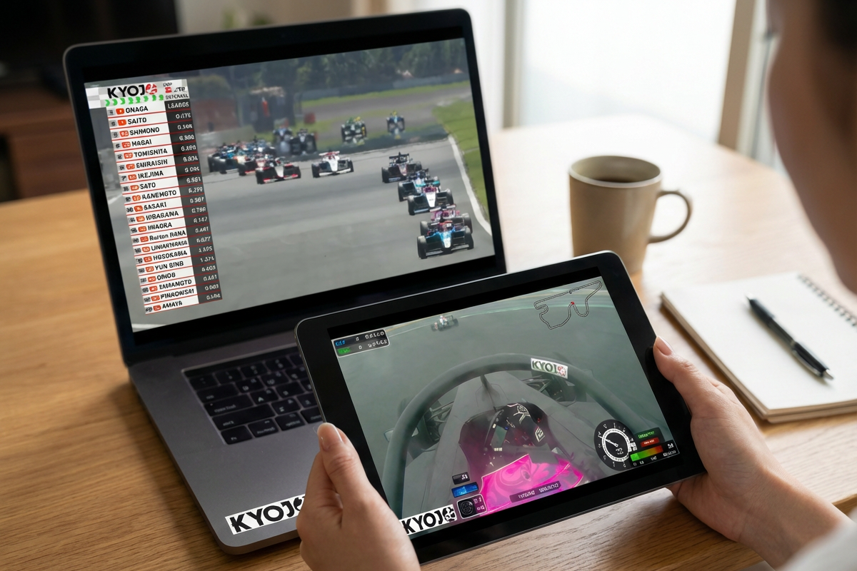予選・スプリント・決勝レースに加え、各種テスト走行まで、すべての走行セッションを全車オンボード映像でリアルタイム視聴できます。現地での観戦では場内実況とともに、全周にわたり選手のバトルを追えます。業界最速の低遅延によりYouTube配信との同時視聴では、タイムラグなくお楽しみいただけます!