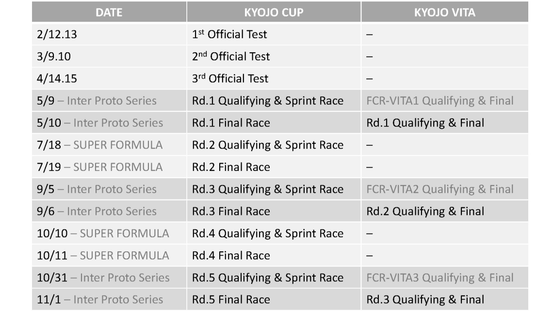 また、FCR-VITAと混走で開催していたKYOJO VITAは、単独クラスとして全3戦をKYOJO CUPと併催いたします。