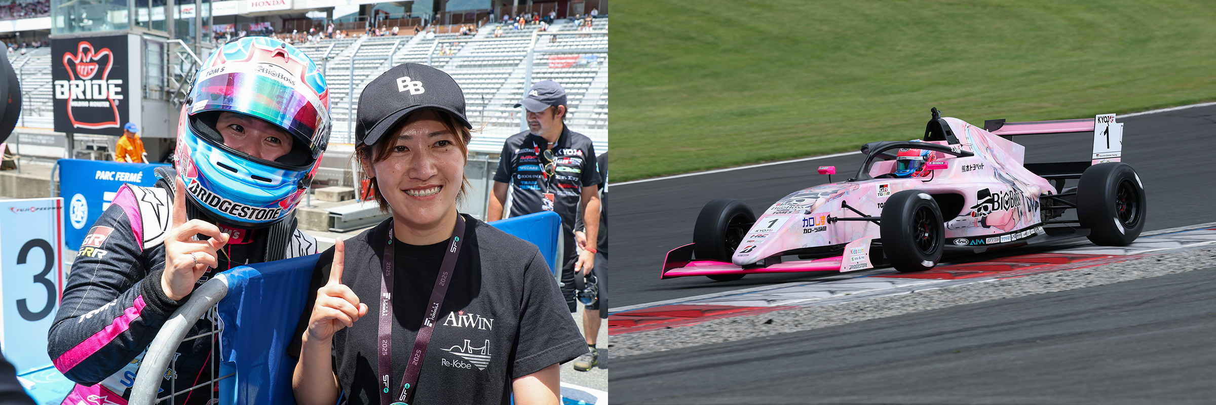 2025年のKYOJO CUP Rd.2のKYOJO Sprintが7月19日(土)に富士スピードウェイで開催され、昨シーズンを制した#1 斎藤愛未(BigBoss W TOM’S KYOJO with AIWIN KC-MG01)がポール・トゥ・ウィンで今季初優勝を飾った。