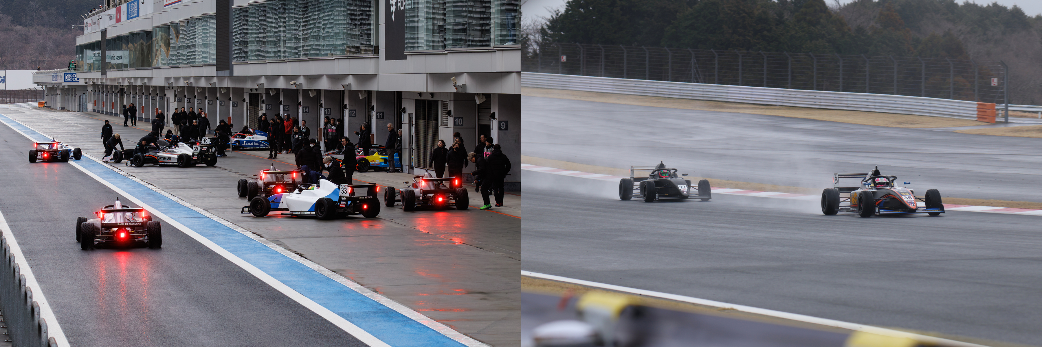 前日に比べると雲の多さが気になるテスト2日目。この日最初の走行枠であるSession5では、富下が1分45秒092をマークして首位でセッションを終えた。この時点では雲間から青空が顔をのぞかせていたが、次第に天候は悪化。続くSession6は雨とみぞれが入り混じり、ドライとウェットが混在するコンディションとなったが、この複雑な路面状況下で速さを見せたのは翁長。一度はレインタイヤで出走するも「ドライ路面に近かった」というセクター3でのタイヤ摩耗が激しく、ドライタイヤに履き替えて走行を再開。1分51秒835を記録してセッションをトップで終えた。
